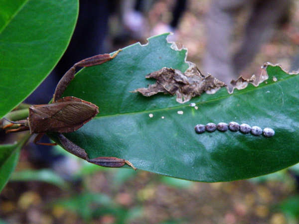<粗腿巨緣椿象~母的和卵粒>