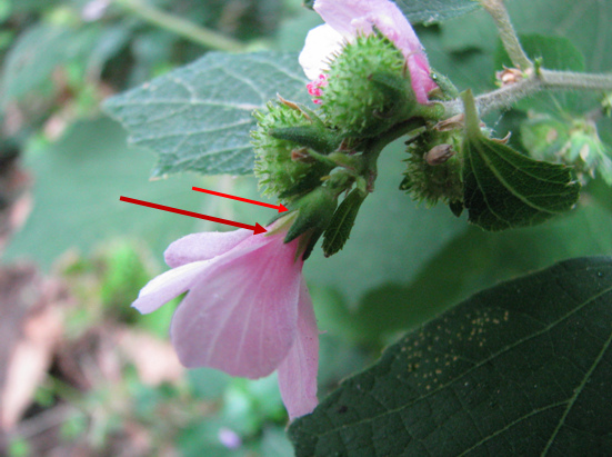 錦葵科野棉花此時正是花季,花萼雙層是辨識重點,蒴果球形,