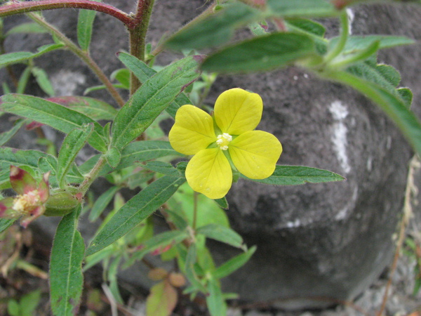 它站在高崗上?不解ㄟ?鮮黃色花瓣4片,倒卵狀圓形,