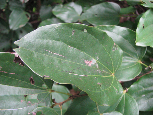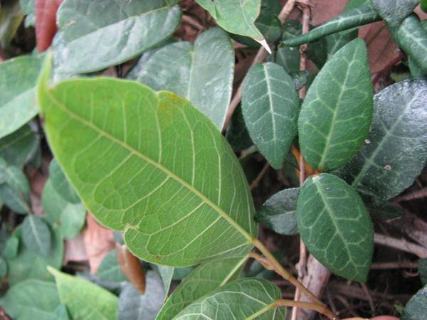 其一:桑科榕屬珍珠蓮,葉革質,互生,3 出脈,葉脈明顯,