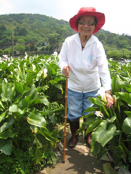 那畫面真是美極了,媽媽玩的很開心,更有趣的是這一片海芋田