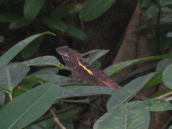 稍遠處一隻小恐龍~斯文豪攀木蜥蜴在休息,