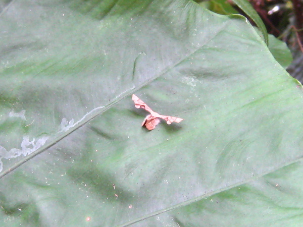 仔細瞧瞧,大大的姑婆芋上停著可是一隻外型似T字的昆蟲,