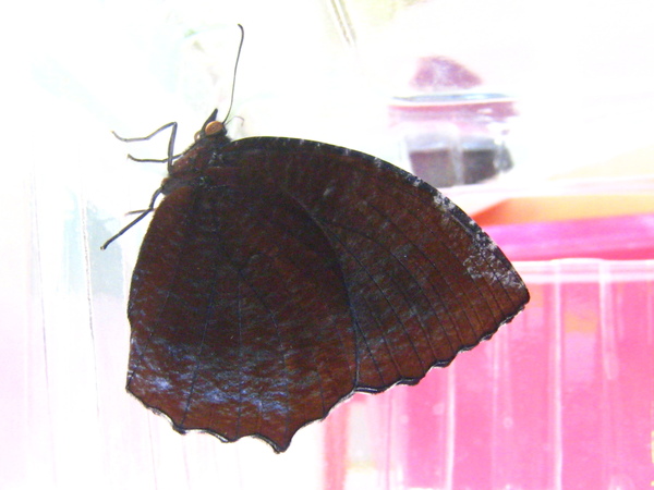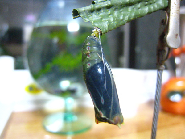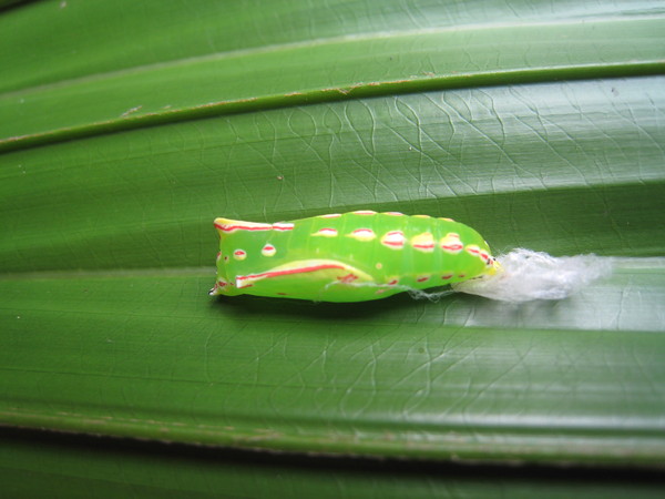 瞧見了紫蛇目蝶蛹,帶回家觀察,五天羽化,