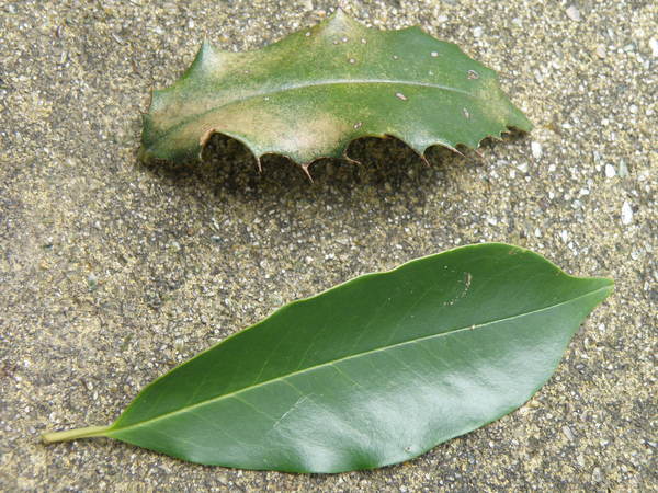 刺葉桂櫻幼年期和壯年期外型差異真大,為了讓多刺的幼葉