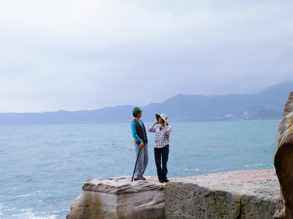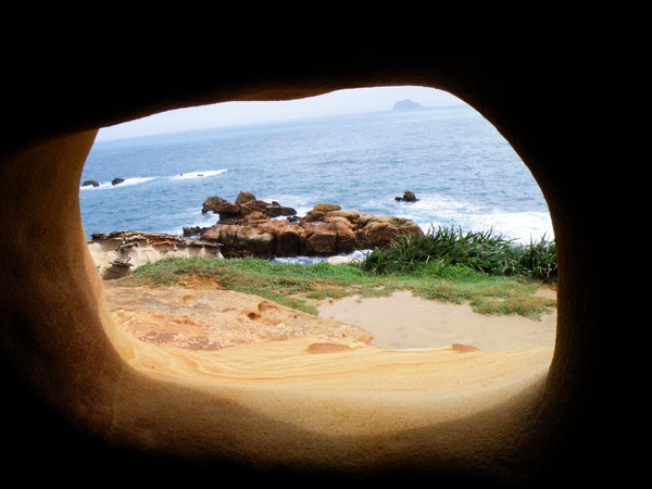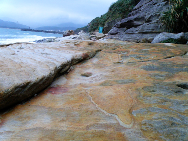 《野柳龜吼鏽染紋、遠方基隆嶼 》