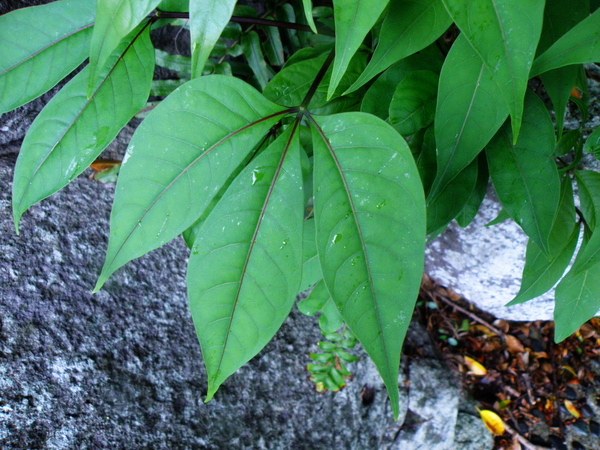 魚木三出葉,小葉歪斜,、葉柄葉脈紅,是端紅蝶、黑點粉蝶、