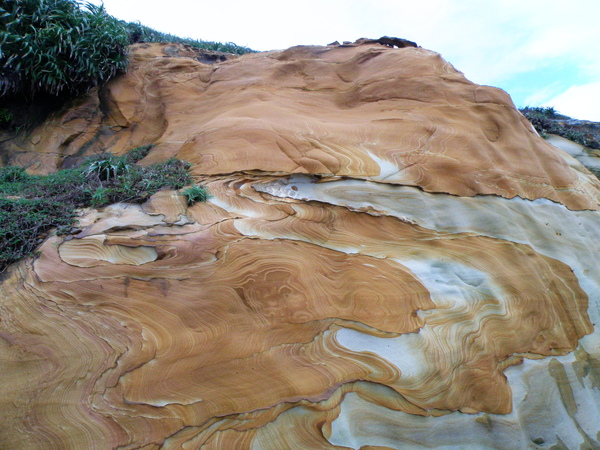 大自然的大筆一揮,在北海岸的岩石上揮灑出特有的鏽染紋,