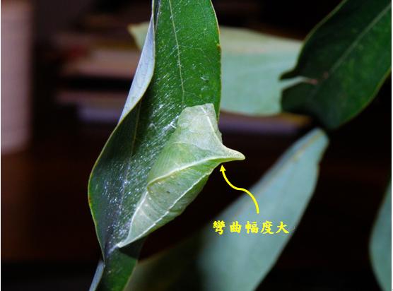 青帶鳳蝶蛹體背部彎曲幅度大,